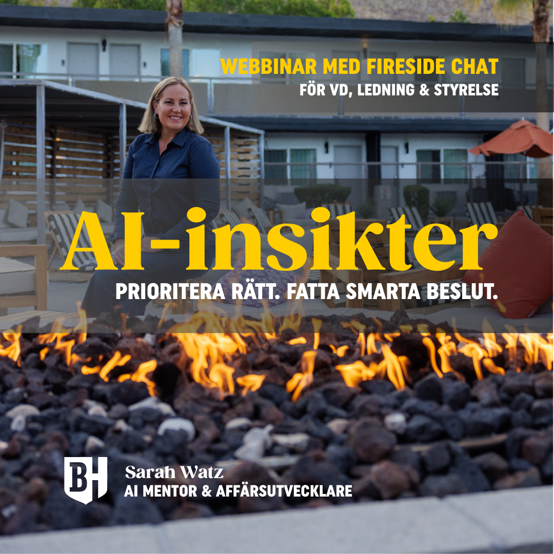 En 60-minuters digital session för dig som sitter i ledningen, styrelsen eller är VD som vill förstå hur AI kan bli en strategisk fördel, inte bara en punkt på agendan.